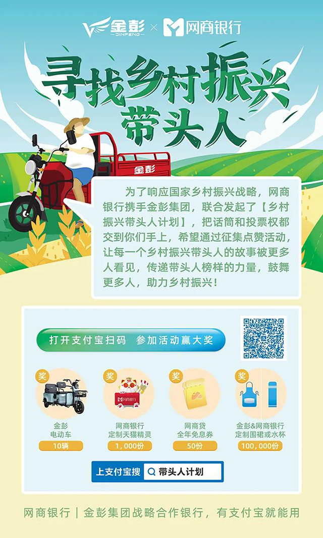 “民族要復興,鄉(xiāng)村必振興!”為響應鄉(xiāng)村振興戰(zhàn)略,老哥俱乐部集團與網(wǎng)商銀行正式開啟戰(zhàn)略合作,聯(lián)合發(fā)起“鄉(xiāng)村振興帶頭人計劃”,把話筒和投票權交到廣大農(nóng)民手上,通過征集點贊活動,讓每一個鄉(xiāng)村振興帶頭人的故事被更多人看見,傳遞帶頭人榜樣的力量,鼓舞更多人,助力鄉(xiāng)村振興!